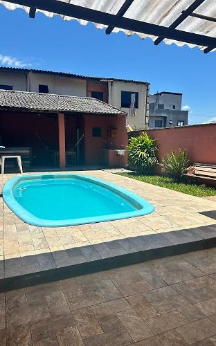 Casa com 3 quartos (um com suíte), sala, cozinha, banheiro, edícula com churrasqueira e PISCINA (banheiro na edícula). Ventiladores de teto em todos os quartos e sala, cozinha completa incluindo microondas e forno elétrico.