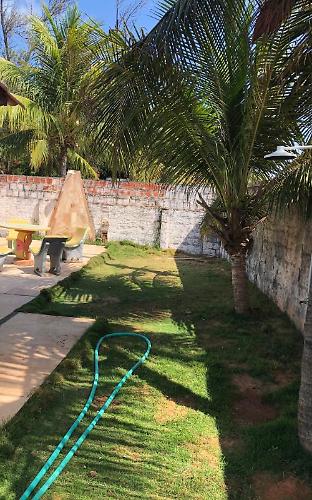 Casa de veraneio há 50 metros da praia, o mar fica por trás da casa, com ampla área de lazer, arejada, muro alto, segura, com área gramada, 2 piscinas adulto e infantil, 3 chuveiros ao redor do alpendre em L, churrasqueira de alvenaria, gelagua, geladeira duplex, freezer horizontal, fogão Cooktop não incluso o valor do gás, mesas e cadeiras plásticas, 3 quartos sendo 2 suítes 1, com cama de casal + banheiro amplo, outras duas suítes com duas camas de solteiro + banheiro amplo, quarto independente + banheiro social, colchões novos, 1 ventiladores na suíte de solteiro.