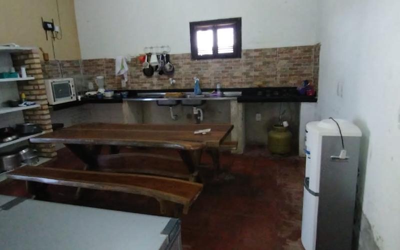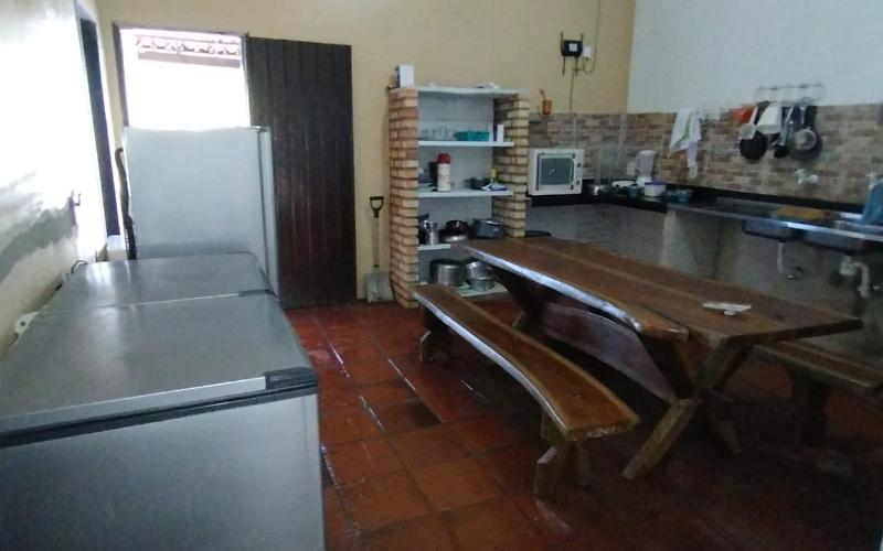 Imóvel reformado recentemente, pintado, inserido mesa de madeira rústica medindo 2,20x80 na cozinha com bancos laterais, freezer e geladeira envelopados, inserido mesa na área da churrasqueira, renovado utensílios de cozinha renovados, inserido panela de pressão.
